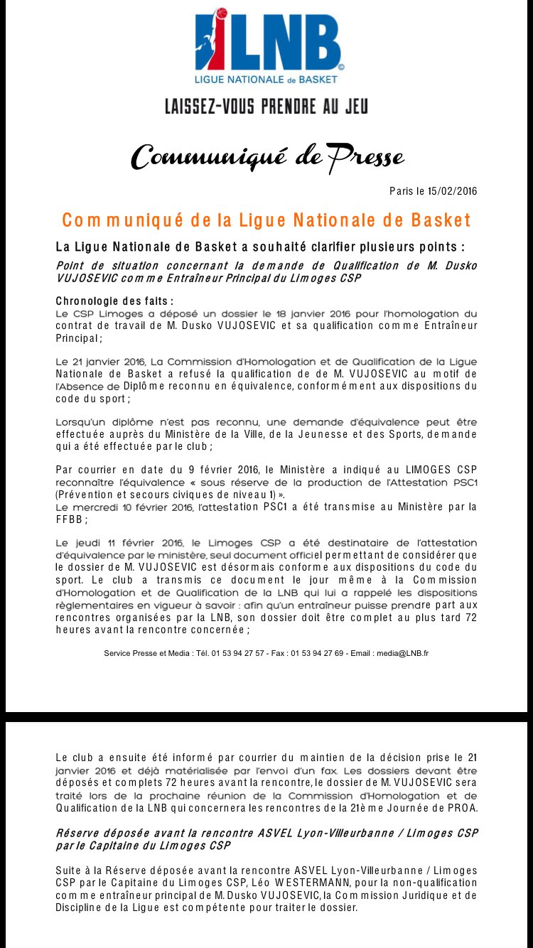 - La LNB, ça devient fatigant, sans crier au complot anti-CSP c'est quand même hallucinant que la ligue qui est sensée développer le basket pro en France ne fasse pas des pieds et des mains pour qualifier un des plus grands coaches qui soient passés par ses bancs.